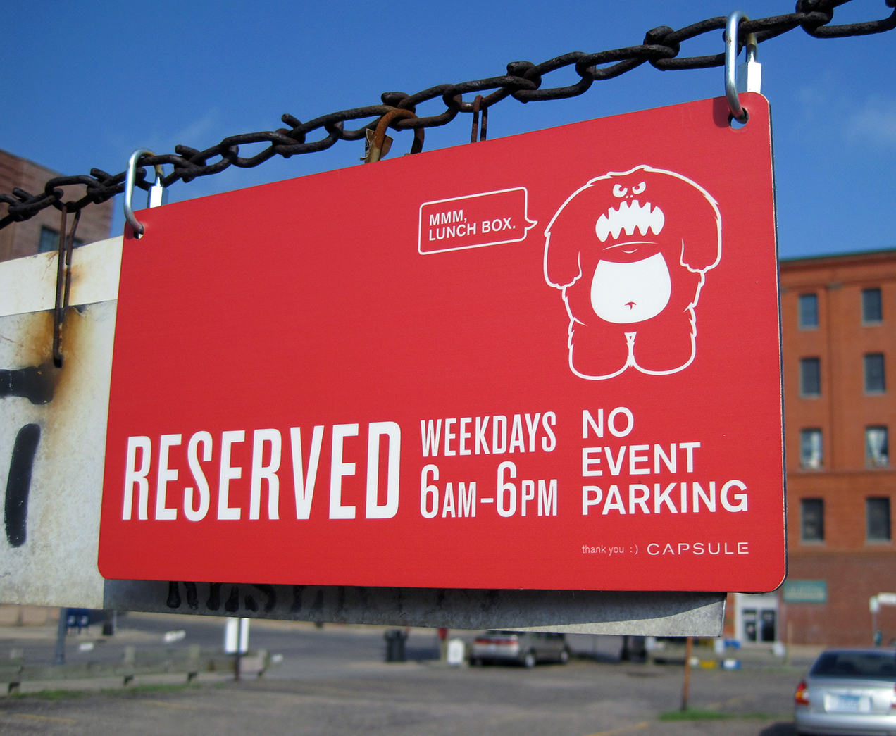 As a self-promotional piece and a solution to their vanishing parking spaces during events, Capsule conceived the idea to create a series of parking signs depicting dire situations that would ensue if a person were to take a space.