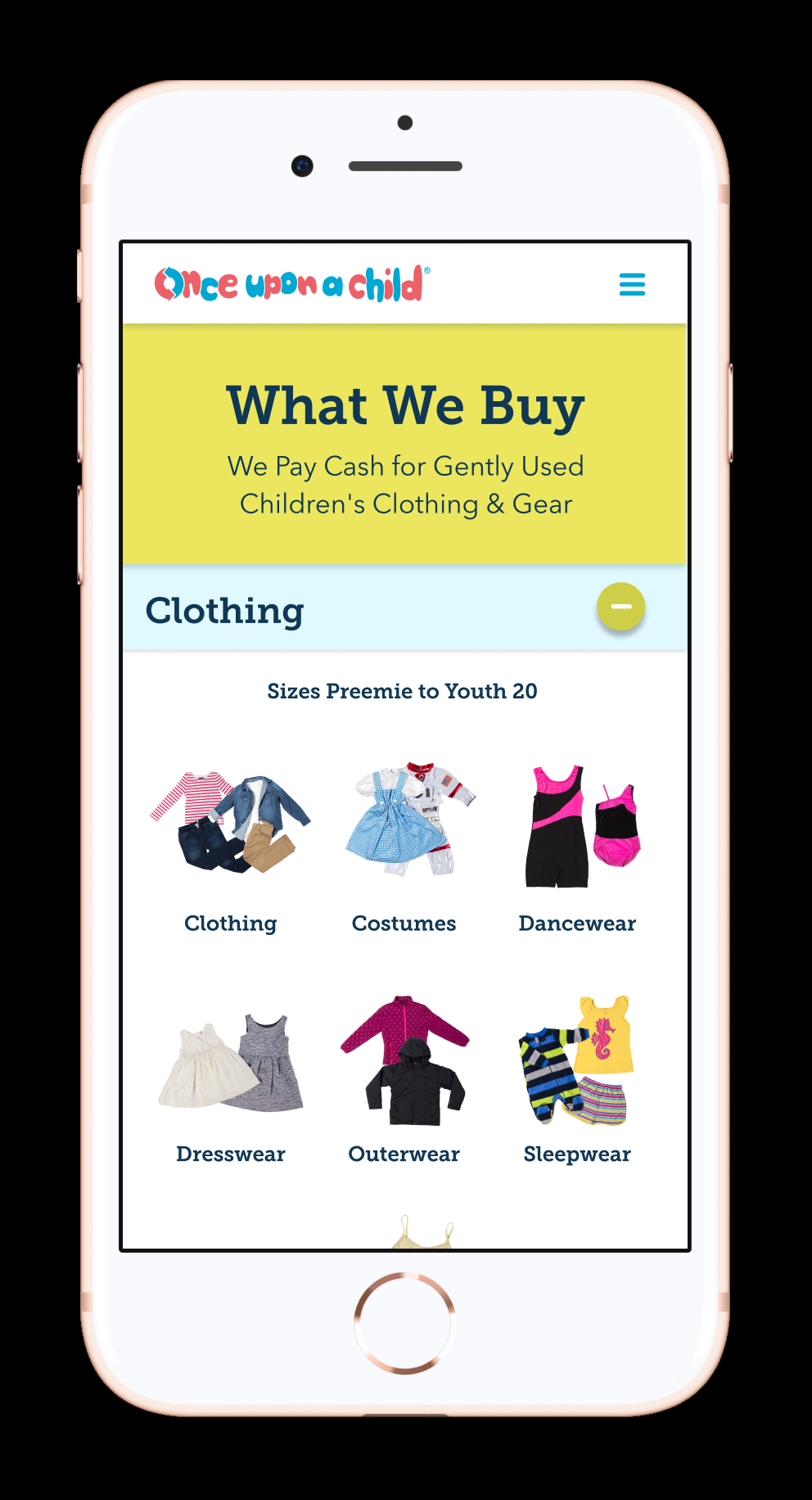 The Once Upon A Child website was in need of a full redesign as they had recently updates the interiors of their stores. They asked for a fresh, mobile first design.